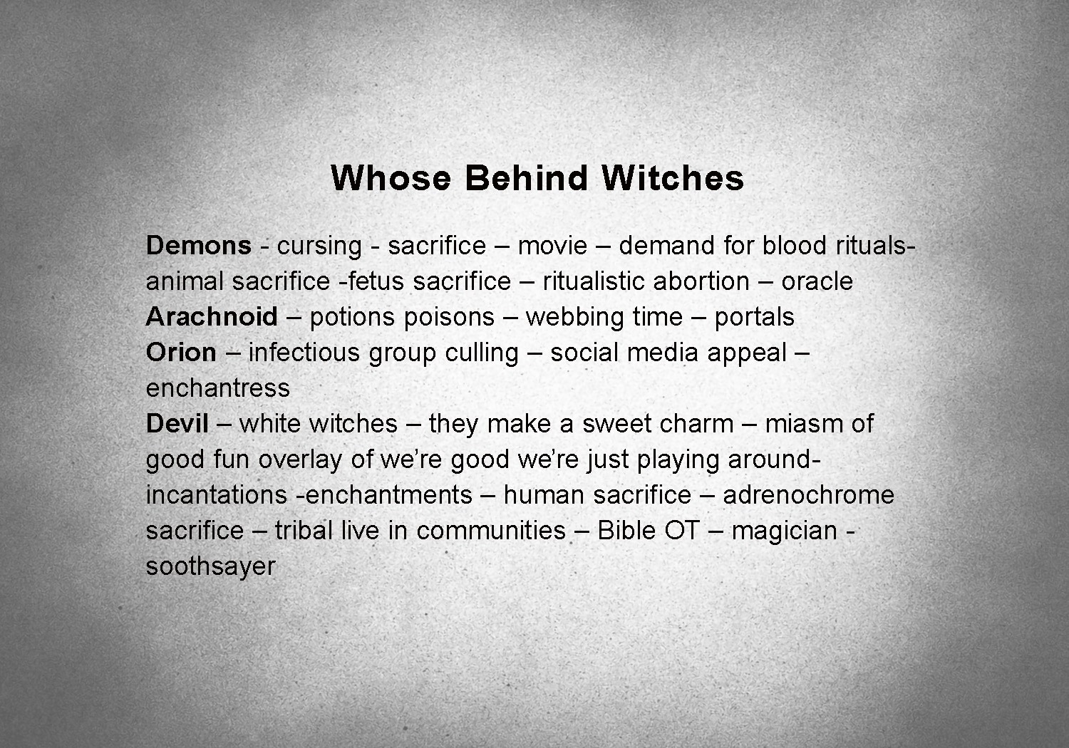 • Witchcraft